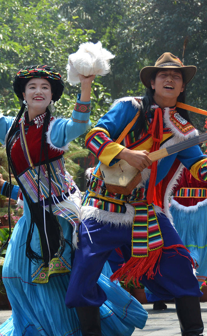 云南省境內(nèi)的藏族人口約12萬,主要聚居在云南迪慶藏族自治州,少量散居于麗江、貢山、永勝、寧蒗等縣。藏族信奉藏傳佛教,白色被藏族視為純潔神圣的象征。藏族村占地21畝,村內(nèi)有大小中甸地區(qū)的坡頂民居和德欽地區(qū)的雕樓式平頂民居。莊嚴(yán)神圣的藏傳佛寺,壯觀的迎賓白塔,象征吉祥和睦的“白牦牛”雕塑與獨(dú)具風(fēng)格的藏式建筑互為映襯,相得益彰。藏族主要節(jié)日有:藏歷年、丹巴日古(七月夏游節(jié))、昂曲節(jié)、格冬節(jié)等;主要禮節(jié)是...